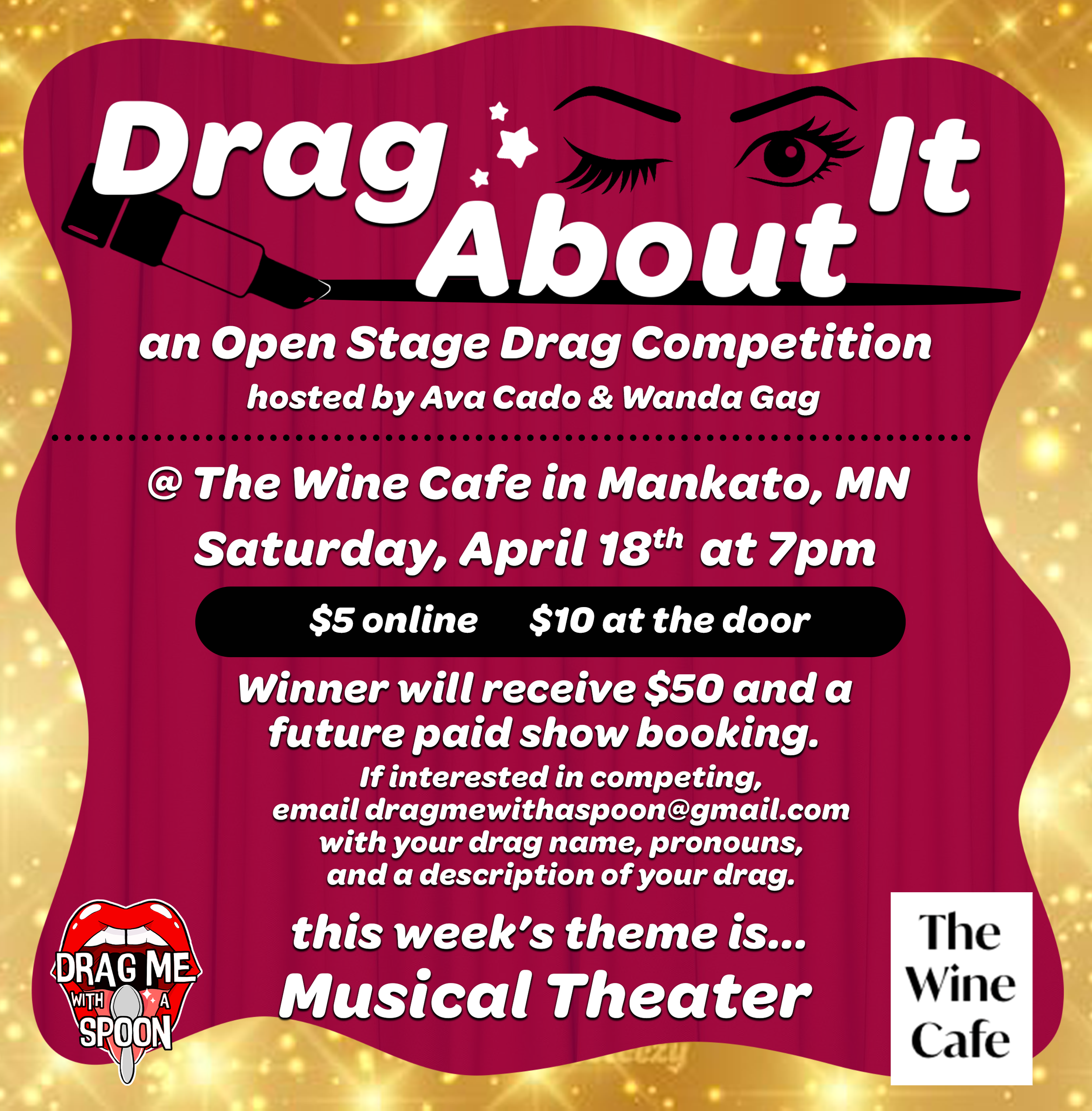 Who will be crowned the next Mx. Drag Me With A Spoon?🥄👄 Join us at LUSH Lounge & Theater on Friday September 19th at 8:30pm as our 11 fabulous contestants compete for the title of Mx. Drag Me With a Spoon! The competition consists of three categories: Creative Wear, Q&A, and Talent. With a fabulous prize package and future bookings with DMWAS, this pageant is not one to miss!